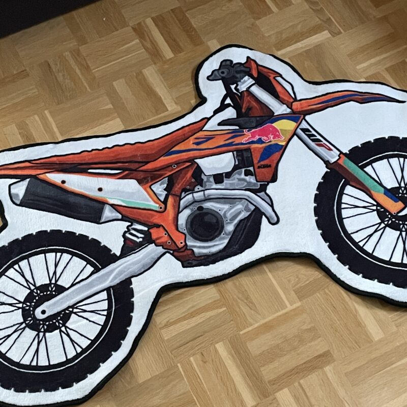Dywan BMW S1000RR został wykonany z wysokiej jakości materiałów. Jest on naprawdę bardzo mięciutki oraz milutki w dotyku. Dywan jest stylowy oraz przyjemny w dotyku. Sprawdzi się on w pokoju, bądź sypialni. PAMIĘTAJ ABY PO ODPAKOWANIU DYWANU GO WYGŁADZIĆ, ROZPROSTOWAĆ!!! Tylko wtedy będzie on wyglądał naprawdę świetnie. Dywany są ogromne, dlatego muszą być one zwinięte…