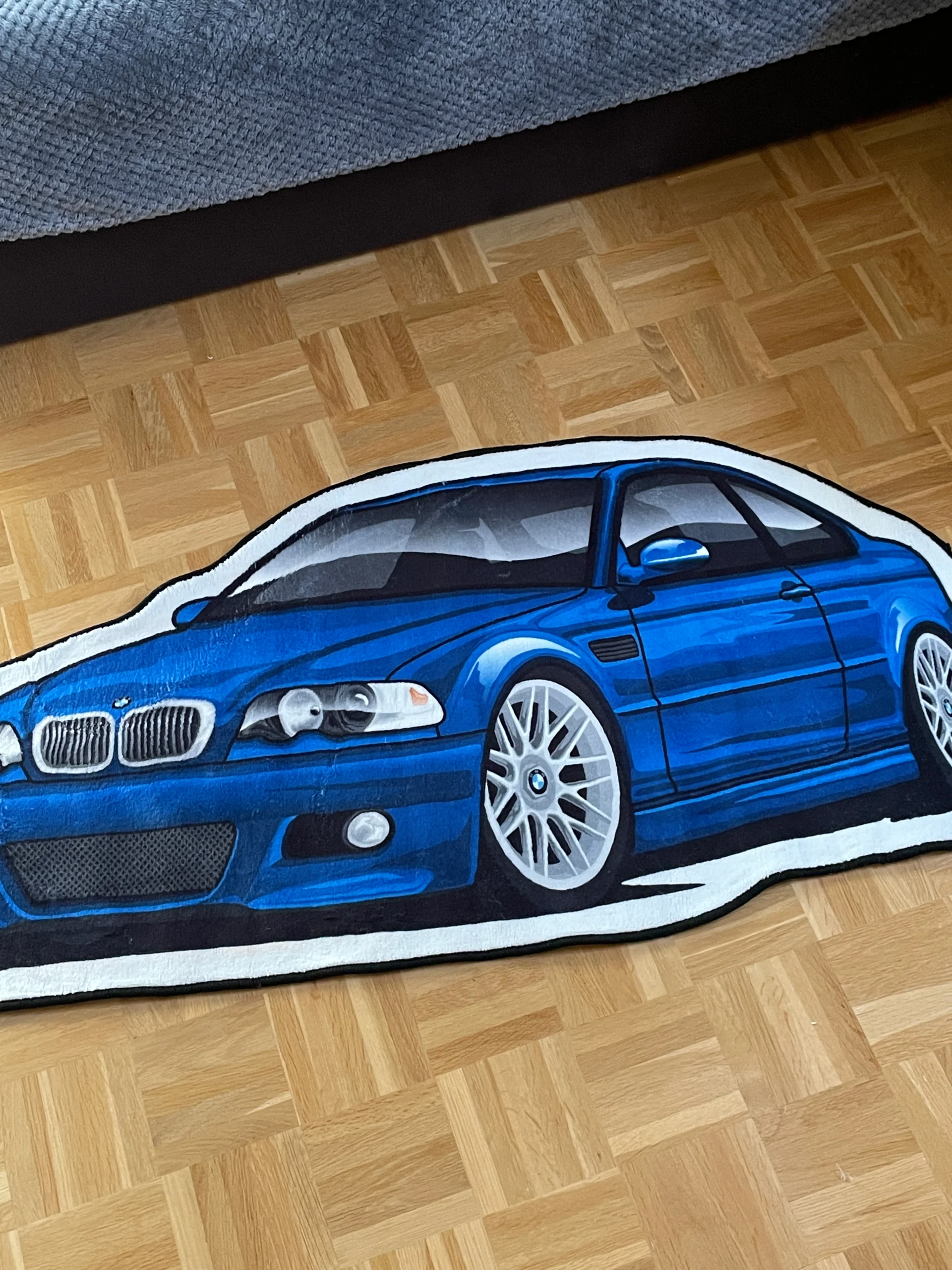 Dywan BMW M3 E46 został wykonany z wysokiej jakości materiałów. Jest on naprawdę bardzo mięciutki oraz milutki w dotyku. Dywan jest stylowy oraz przyjemny w dotyku. Sprawdzi się on w pokoju, bądź sypialni. PAMIĘTAJ ABY PO ODPAKOWANIU DYWANU GO WYGŁADZIĆ, ROZPROSTOWAĆ!!! Tylko wtedy będzie on wyglądał naprawdę świetnie. Dywany są ogromne, dlatego muszą być one zwinięte w rulon podczas wysyłki.
