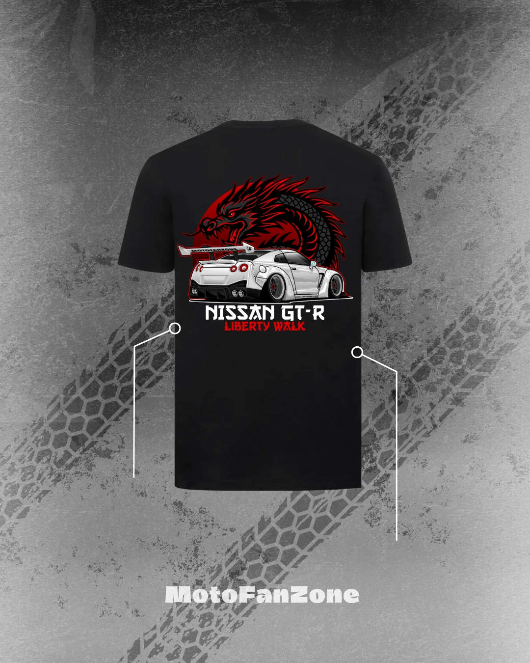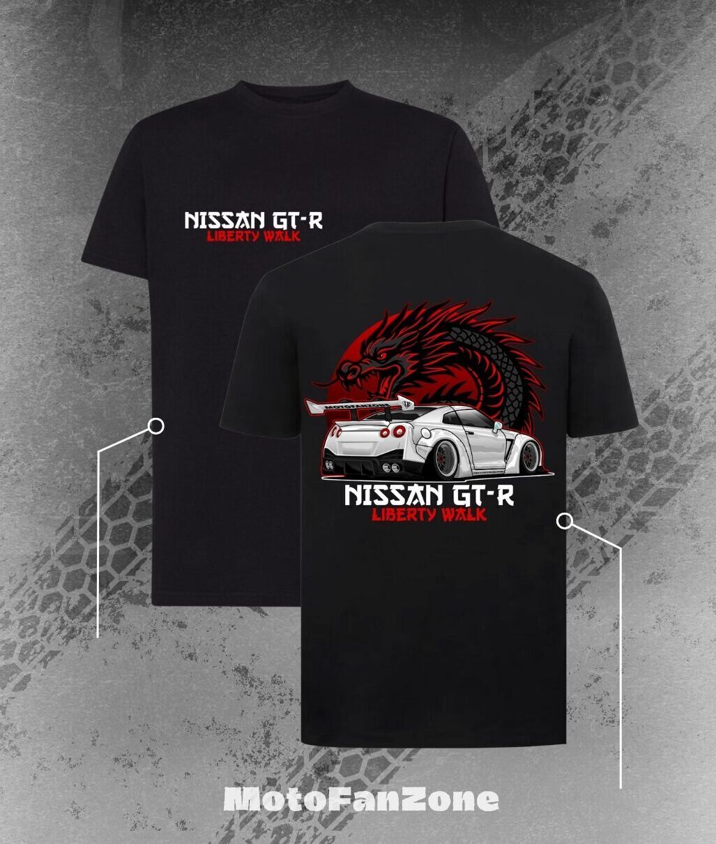 Koszulka Nissan GT-R R35 Liberty Walk. Koszulka została wykonana w Polsce z materiałów wysokiej jakości.