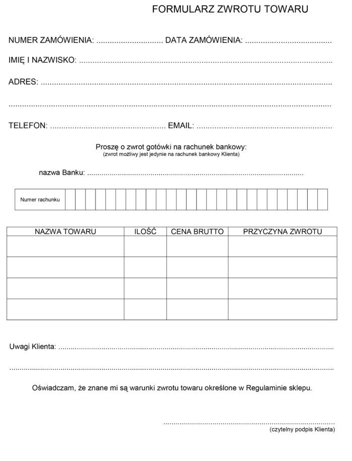 Zdecydowałeś się na zwrot? Skontaktuj się ze mną na instagramie MotoFanZone lub przy pomocy maila kontakt@motofanzone.pl, wyślę ci etykietę która umożliwi zwrot. Pamiętaj aby wypełnić formularz zwrotu i umieścić go wraz z zwracaną paczką. Zwroty zazwyczaj rozpatruje w ciągu 24h i zlecam zwrot środków. Jeśli masz jakieś pytanie bądź wątpliwości, kontaktuj się ze mną za pomocą instagrama. Pamiętaj masz tylko 14 dni na zwrot od momentu odbioru paczki.